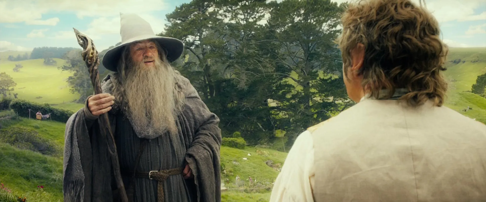 Cast: Ian McKellen as Gandalf, Martin Freeman as Bilbo Baggins, Richard Armitage as Thorin, Graham McTavish as Dwalin, Aidan Turner as Kili, Ken Stott as Balin, Dean O'Gorman as Fili, James Nesbitt as Bofur, Mark Hadlow as Dori / Bert Troll, Stephen Hunter as Bombur, William Kircher as Bifur / Tom Troll, John Callen as Oin, Peter Hambleton as Gloin / William Troll, Jed Brophy as Nori, Adam Brown as Ori, Ian Holm as Old Bilbo, Elijah Wood as Frodo, Hugo Weaving as Elrond, Cate Blanchett as Galadriel, Christopher Lee as Saruman, Andy Serkis as Gollum, Sylvester McCoy as Radagast, Barry Humphries as Great Goblin, Jeffrey Thomas as Thror, Michael Mizrahi as Thrain, Lee Pace as Thranduil, Manu Bennett as Azog, Conan Stevens as Bolg, John Rawls as Yazneg, Stephen Ure as Fimbul / Grinnah, Timothy Bartlett as Master Worrywort, Bret McKenzie as Lindir, Kiran Shah as Goblin Scribe, Benedict Cumberbatch as Necromancer, Glenn Boswell as Dwarf Miner, Thomas Robins as Young Thrain, Luke Evans as Girion (Extended Edition), Dan Hennah as Old Took (Extended Edition), Stephen Gledhill as Old Gammidge (Extended Edition), Tim Gordon as Old Hob (Extended Edition), Sonia Forbes Adam as Belladonna Took (Extended Edition), Oscar Strik as Little Bilbo (Extended Edition), Erin Banks as Lobelia Sackville Baggins (Extended Edition), Brian Hotter as Otho Sackville Baggins (Extended Edition), Eric Vespe as Fredegar Chubb (Extended Edition), Mervyn Smith as Tosser Grubb (Extended Edition), Ruby Acevedo as Cute Young Hobbit, Katie Jackson as Cute Young Hobbit, Isaac Miller as Cute Young Hobbit, Ella Olssen as Cute Young Hobbit, Louis Ashbourne Serkis as Cute Young Hobbit, Sonny Ashbourne Serkis as Cute Young Hobbit, Ruby Ashbourne Serkis as Cute Young Hobbit, Terry Notary as Great Goblin / Yazneg (uncredited), Peter Jackson as Running Dwarf in Erebor (uncredited)